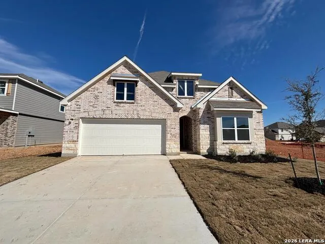Charming one story home with gourmet kitchen featuring quartz countertops, upgraded cabinets, and a pantry. Open and spacious family room with large windows that look out onto the backyard. No direct back neighbors. Secluded primary suite features a private bath with an oversized shower, garden tub, double vanities, and a walk-in closet. Three secondary bedrooms, a separate sitting room, and two additional bathrooms. Covered patio ideal for outdoor relaxation. Full landscaping package with a sprinkler system. This home is part of our Oxford Collection - where timeless finishes and rich cabinets meet bright floors and balanced lines. Oxford blends relaxed elegance with enduring style, creating a space for laughter, traditions, and meaningful moments from day one. This home is in Saddlebrook Ranch, a master-planned community in Schertz, offering easy access to I-35, shopping, dining, Randolph AFB, a pool, playground, and top-rated schools.