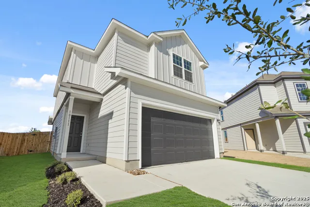 Love where you live in Melissa Ranch in San Antonio, TX! The Rockhampton floor plan is a spacious 2-story home with 3 bedrooms, 2.5 baths, and 2-car garage. The first floor offers the perfect space for entertaining with vinyl plank flooring and a large kitchen island open to both the living and dining areas! The gourmet kitchen is sure to please with 42" cabinetry, granite countertops, and stainless-steel appliances! Upstairs offers a split floor plan and private retreat for all bedrooms! Retreat to the Owner's Suite featuring double sinks with granite countertops, a sizable shower, and a walk-in closet. Enjoy the great outdoors with a sprinkler system and a covered patio! Don't miss your opportunity to call Melissa Ranch home, schedule a visit today!