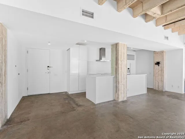 A must-see top-floor studio loft featuring an open floor plan, high ceiling, and concrete floors throughout. The kitchen has high-end plumbing fixtures, Bosch appliances, and solid countertop surfaces. The bathroom has slate tile. The large windows offer a lot of natural light. There is a fully equipped fitness center and an on-site pool is included in ownership. Wonderfully located in King Williams Historic District within walking distance to the SA River, restaurants, and Blue Star!