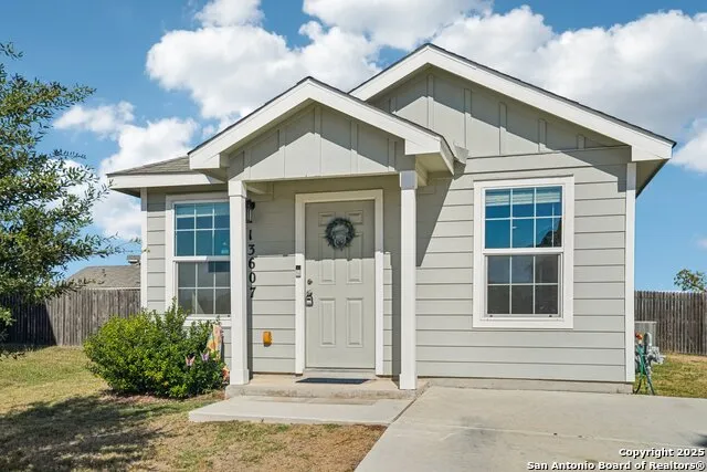 Welcome to 13607 Flock Place situated on nearly a quarter-acre, cul-de-sac lot! Step inside this beautifully maintained three-bedroom, two-bathroom home, and instantly fall in love! Built in 2020, this home feels like new and has been lovingly cared for, offering a fresh and inviting atmosphere from the moment you walk in. The open-concept layout creates a seamless flow between the main living and dining areas, making it the perfect space for entertaining or relaxing. The kitchen is a standout, featuring sleek granite countertops, stainless steel appliances, ample cabinet and counter space, and gas cooking-a dream for any home chef! Down the hall, you'll find two well-appointed secondary bedrooms and a full guest bathroom. The spacious primary suite is a private retreat, complete with an en suite bathroom featuring a single-sink vanity and a shower/tub combo for ultimate convenience. Step outside to enjoy a near quarter-acre backyard complete with a 20x20 patio, shed, and yard lighting - perfect for outdoor dining, weekend BBQs, or relaxing under the Texas sky. Beyond the home itself, Silo residents enjoy access to top-notch amenities, including a state-of-the-art fitness center, a sparkling community pool, and a playground-perfect for staying active and enjoying the outdoors. The new onsite elementary school located just a half mile away. Plus, the community's prime location just off Highway 90 makes commuting a breeze, with Lackland Air Force Base and other major employers a short drive away. If you're looking for a move-in-ready home in a vibrant community, this one is a must-see!