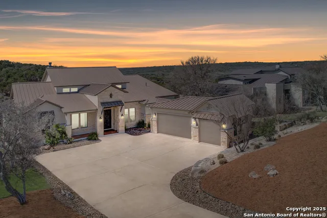 Welcome to 1741 Antigua Cove, a stunning custom home nestled in the highly sought-after River Place at Gruene, one of New Braunfels' most desirable neighborhoods. Just minutes from the charming town of Gruene, yet outside city limits to keep your taxes low, this property offers the perfect blend of convenience and tranquility. This immaculate one-story home is designed for modern living with every detail carefully crafted. Featuring four spacious bedrooms, each with its own en suite bathroom and walk-in closet, plus a dedicated office and expansive bonus room with custom barn door, there's plenty of space for all your needs. The chef's kitchen is a true standout, showcasing custom cabinetry, a double oven, gas cooking, and a pot filler-perfect for cooking and entertaining. A unique touch in the living room is the hidden TV, cleverly concealed behind a piece of artwork that slides away at the push of a button, eliminating the need for the TV to be the focus of the room. Every inch of this home is immaculate, from the oversized laundry room to the stunning lighting fixtures and gorgeous hardwood and tile floors. The thoughtful layout ensures maximum privacy for the bedrooms while still fostering a warm, inviting atmosphere throughout the home. Set on 1.48 acres in a quiet cul-de-sac, this home offers breathtaking, panoramic views off of an expansive 800 sf covered outside living area with fireplace and outdoor kitchen. As a resident of River Place at Gruene, you'll have access to a private Guadalupe River park, providing a perfect place to relax and enjoy the natural beauty of the area without having to fight the crowds.This home has it all-luxury, privacy, and unparalleled charm. Come see it for yourself!