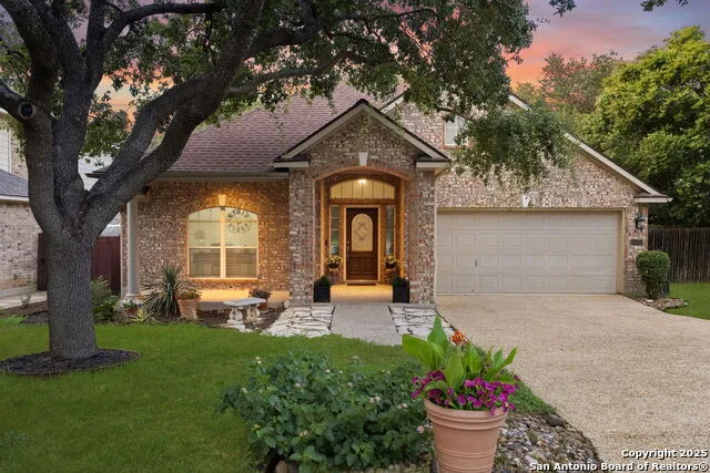 Beautifully refreshed and move-in ready in the gated community of Village on the Glen at Big Springs! This 4-bedroom, 2-bathroom home offers thoughtful updates and a flexible floor plan. Step inside to find gorgeous wood-look luxury vinyl plank flooring in the living and dining areas, fresh interior paint, and new carpet in the bedrooms and flex room. The versatile flex room at the entry includes a closet and can easily serve as a home office or guest bedroom. The open kitchen features ample counter space, a central island, stainless steel appliances, and a gas cooktop - perfect for cooking and entertaining. The inviting living room with a cozy fireplace and a bay-window breakfast nook overlooks the private backyard with a concrete patio and mature shade tree. The spacious primary suite offers a peaceful retreat with a garden tub, separate shower, and dual vanities. One secondary bedroom has an en suite bath, ideal for guests, while two additional bedrooms provide generous closet space. Located just off Hwy 281 near top-rated NEISD schools, shopping, dining, and everyday conveniences. Don't miss this updated home in a prime Stone Oak location - schedule your showing today!