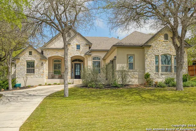 Reduced! 4 bed 4.5 bath one story home in Garden Ridge! Located on 3/4's of an acre with a year young contemporary designed pool and adjoining 12 person spa, this 6 years young home has all the upgrades and features you have been searching for. Open great room affect with 11 ft ceilings, accent rock walls, gas fireplace, beamed ceilings in dining room and tons of natural light. The kitchen has double islands, double pantry and yards of gorgeous granite. Plantation shutters on all street facing windows, oversized 3 car garage with built in storage. Primary BR has beamed cathedral ceilings and luxury bath. All bedrooms have full baths adjoining. Gorgeous treed lot with natural area out back with a fire pit gathering area. Designer pool has tanning ledge with umbrellas and fountain sprays, built in seating, and an in-floor cleaner. Pool is heated and equipped with Pentair smart system with LED multi-colored lighting. Transferable pool warranty and nearly 4 years remaining on 10 year builder warranty make this home a safer investment, Agents see confidential remarks for more information. Be sure to check out the virtual tour!!