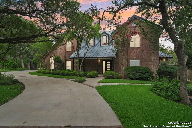 Welcome to 21641 Forest Waters Circle - a rare opportunity to own one of the largest and most distinctive estates in the prestigious Forest Waters community of Garden Ridge. Set on an expansive 1.88-acre, tree-filled lot, this custom-built estate was lovingly maintained by its original owner and is now being offered for the first time ever on MLS. Behind a full privacy fence and automated gated entrance, this property delivers both privacy and grandeur in equal measure. The sprawling 5,092 sq ft main home features 5 generously sized bedrooms (one currently serving as a home office) plus a bonus room, 4 full bathrooms, and 2 half baths. With 3 fireplaces, two distinct living areas, and a full wet bar, the layout is ideal for entertaining or multi-generational living. Custom touches abound- plantation shutters throughout, dumbwaiter lift, built-in laundry chute, multiple balconies, a spiral staircase, and built-in cabinetry that add timeless elegance. The primary suite is a true retreat, featuring its own fireplace and private enclosed courtyard with a serene outdoor shower-perfect for unwinding after a swim or enjoying peaceful moments in nature. Additional features include a three-car attached garage and an upstairs studio apartment with its own full bath, kitchenette, private balcony, and ample storage- ideal for guests or extended family. Outdoors, a Grecian-style pool with cascading spa and diving board creates a resort-like setting, complemented by multiple sitting areas, a covered patio with Smart TV, a large outdoor fireplace, and beautifully landscaped grounds supported by a 12-zone automatic irrigation system. A custom children's playhouse adds charm and fun to the backyard. Residents have the option to join the private neighborhood club of Garden Ridge Fitness which offers numerous amenities, including an indoor pool, a gym with personal trainers and fitness classes, a sauna and spa, basketball courts, a tennis/pickle ball court and even part-time child care. The community also offers two scenic lakes, one of which allows fishing- adding even more serenity and outdoor enjoyment to this exclusive setting. This is a home with heart, history, and exceptional style- an extraordinary find in one of Garden Ridge's most sought-after neighborhoods. Be sure to view the virtual tour of the home and schedule your private showing today!