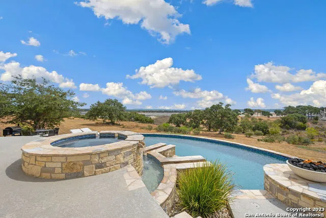 Highly motivated sellers ready to negotiate. Indulge in luxury living at this exclusive Lakeview property on Canyon Lake within the gated subdivision of Peninsula at Mystic Shores. Situated on nearly 2 acres, this custom-built one-story home offers unparalleled craftsmanship and breathtaking 180-degree scenic views from almost every room, showcasing the lake and surrounding hills. Open floor plan with double glass doors at the main entrance and floor to ceiling windows in living room and dining room, make this home perfect for entertaining. The living room features a wood-beam ceiling and a floor-to-ceiling stone fireplace, while the kitchen is a culinary masterpiece with quartz countertops, premium Monogram appliances, custom cabinets, wine fridge, double oven, built-in microwave, and gas stove. Take a peek at the hidden oversized walk-in pantry! There are 3 bedrooms plus large study that can easily be converted to 4th bedroom! The primary bedroom has trayed ceiling and double French doors leading to a private balcony overlooking the pool and lake, is a sanctuary of tranquility. The primary bathroom offers an oversized spa garden tub, double vanity, walk-in shower with double shower heads, and a spacious walk-in closet. The third bedroom is designed as an in-law suite with a separate private entrance, kitchenette, en-suite bathroom, and bay windows framing a stellar Hill Country view. Enjoy a Texas sunrise or evening dinners on the 766-square-foot covered back porch, featuring a rich wood panel ceiling, multiple seating areas, al fresco dining, an outdoor kitchen with a grill, ice maker, and ample counter space. The heated pool with a stacked stone waterfall, multiple light features, hot tub, and fire pit create an outdoor oasis. A 1,100-square-foot three-bay garage with an air-conditioned workspace and storage ensures both functionality and style. Energy efficiency is paramount, with three programmable HVAC units, spray foam insulation, and pre-wiring for a Generac whole-house generator. Experience the epitome of luxury living in this meticulously crafted residence where every detail has been thoughtfully designed for the most discerning homeowner. The Amenities of Mystic Shores include a boat ramp, lakefront park, playground, jogging & biking trails, multiple pools, tennis courts, nature preserves and more.