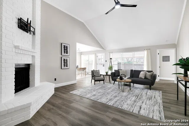 This gorgeous single-story home on a quiet corner lot in Schertz, Texas, offers the perfect blend of modern comfort and classic charm. The fully renovated interior boasts an open floor plan that seamlessly connects the spacious living room, complete with a cozy fireplace, to the dining room and beautifully designed kitchen. In the kitchen you'll find ample storage, updated appliances, a cozy breakfast nook, and plenty of natural light perfect for houseplants. The primary bedroom is a true oasis, featuring a luxurious walk-in shower and ample closet space. The three additional bedrooms provide plenty of room for family and guests or a home office. Enjoy barbequing or simply relaxing on the huge covered patio in the quiet backyard. The garage features an additional 220V outlet for flexibility. With no carpet, a brand new HVAC system, and modern upgrades throughout, this home is truly move in ready. Less than 15 minutes from Randolph AFB, five minutes to IH-35, and less than 30 minutes from downtown San Antonio, this home's prime location is perfect for anyone seeking a comfortable neighborhood with easy access to work, shopping, dining, and more. Don't miss your opportunity to make this beautiful home your own!