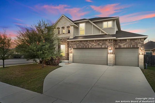 Welcome to your dream home! This beautifully designed 2-story residence boasts 5 spacious bedrooms and 4 full bathrooms, with 1 being a jack-in-jill bathroom, perfect for families seeking both comfort and space. The home features a generous 3-car garage that provides ample parking and storage. As you enter, you'll be captivated by the expansive kitchen, a chef's delight, featuring dual kitchen islands, sleek stainless steel appliances, and a roomy walk-in pantry - ideal for all your culinary adventures. The open concept layout seamlessly connects the kitchen to the living areas, making it perfect for entertaining friends and family. Retreat to the luxurious primary bedroom, where natural light streams in, and a massive custom walk-in closet. The en-suite bathroom offers a spa-like experience, complete with his and her vanities, a garden tub, and a separate walk-in shower - a serene escape after a long day. This home is designed for fun and relaxation with a dedicated media room and a game room, providing endless entertainment options for everyone. Step outside to the beautifully manicured backyard, where you can unwind on the covered back patio, surrounded by a privacy fence that creates your own personal oasis. Situated on a corner lot right across the street from John A. Sippel Elementary School and just one minute from the School of Science and Technology of Schertz, this location is perfect for families. Plus, you're just minutes away from a variety of dining and entertainment options, with a short commute to Randolph AFB and BAMC. Don't miss the opportunity to make this stunning home your own! Schedule a showing today and experience the perfect blend of luxury, convenience, and community living!
