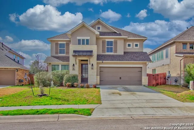 Welcome to your dream home in the sought-after, gated community of Johnson Ranch in Bulverde! This home is designed to impress, featuring an abundance of natural sunlight streaming through expansive windows that highlight the home's open and airy layout. Boasting 4 spacious bedrooms, an office, and 3.5 bathrooms, this home offers plenty of room for both relaxation and productivity. Two generous living areas provide versatility for entertaining, while the chef's kitchen is thoughtfully designed for function and style. The 2-car garage ensures ample storage and convenience. Beyond the home, the Johnson Ranch community is known for its fantastic amenities, including parks, trails, and recreational spaces-perfect for gatherings and outdoor enjoyment. Conveniently located off Highway 281, this home offers easy access to shopping, dining, and top-rated schools. Don't miss your chance to own this light-filled, modern masterpiece in one of Bulverde's most exclusive gated communities! Schedule your showing today!