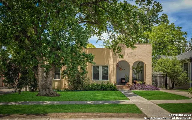 Welcome to this charming Mission-style home in highly desirable Mahncke Park. With loads of curb appeal, this home has it all. Hallmark smooth stucco exterior, covered arcade with beautiful mural, tile accents, native plants, wrought iron gated driveway. Refinished hardwood floors, remodeled kitchen, granite countertops, updated primary bath, walk-in closets, newer windows, detached garage, and extra parking. The study with sliding barn doors and built-ins works well as a 4th bedroom. The Gallery is a great flex space: second living area, dining room, playroom, or music room. Beautifully landscaped backyard with paver-stone patio. One block from Lamar Elementary PK3-6th grade campus. Within walking distance of the Witte Museum, Botanical Gardens, and The DoSeum.