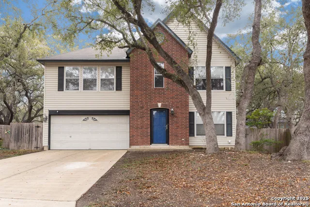 Welcome to this 3-bedroom, 2.5-bathroom home tucked away in the highly sought-after Ashley Place subdivision in Schertz! Located on a quiet cul-de-sac, this spacious 2,104 sq. ft. home offers both comfort and convenience. Inside, you'll find an inviting floor plan with all bedrooms conveniently located upstairs. The two guest bedrooms share a full bathroom, while the spacious primary suite offers plenty of room for a sitting area, home office, or flexible utility space. It also features a large walk-in closet and a private en-suite bathroom, creating a comfortable retreat. The kitchen offers plenty of room for a breakfast table or a large island, making it the perfect spot for gathering and entertaining. Plus, the refrigerator stays! The oversized laundry room can also serve as a pantry or additional storage space. Step outside into the beautiful backyard, where mature trees provide ideal shade during hot Texas summers. Whether you're hosting a BBQ or enjoying a quiet evening, this open space is perfect for relaxation, the play station outback conveys with the home! Additional features include a 2-car garage with plenty of storage and a prime location just steps from a highly rated elementary school in Cibolo-Schertz-Universal City ISD-voted the #1 Best School District in Guadalupe County. The intermediate school is also within close walking distance! This home is also conveniently located near everything you need, including grocery stores, shopping centers, a variety of restaurants, and Randolph AFB. Whether you're running errands, dining out, or commuting, you'll love the unbeatable accessibility of this prime location! Don't miss out on this incredible opportunity. Schedule your showing today!