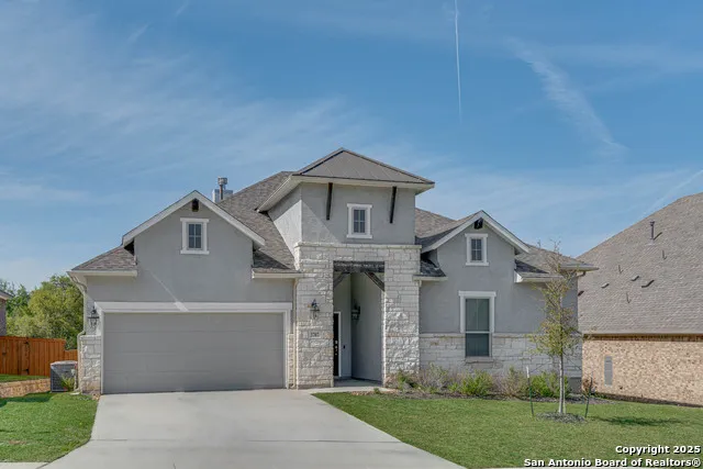 Live the Luxury Lifestyle in Cibolo Canyons! Welcome to a home that perfectly blends elegance, comfort, and modern design-nestled in the prestigious Cibolo Canyons community. This beautifully crafted single-story residence features an expansive open-concept layout, ideal for both relaxed daily living entertaining. With 4 spacious bedrooms, 3 full bathrooms and one half bathroom for guest. This home offers a thoughtful and flexible floor plan for families of all sizes. At the heart of it all is the gourmet kitchen, showcasing GE Profile stainless steel appliances, a sleek gas cooktop, and a stylish eat-in island highlighted by designer pendant lighting-a space as functional as it is beautiful. The living area also includes an open home bar great for entertainment. The extended primary suite offers a peaceful escape with the option of a luxurious shower and soaking tub, creating a serene, spa-like retreat. Step out to your expanded and private covered patio ideal for outdoor dining, looking at the green belt views for evening relaxation. High-end finishes abound, including wood-look tile flooring, granite countertops, custom cabinetry, and energy-efficient features such as a programmable thermostat and double-pane windows-ensuring comfort, style, and sustainability. Located in the heart of Cibolo Canyons, you'll have access to resort-style amenities like a pool, tennis courts, jogging trails, and more-all just minutes from top schools, shopping, dining, and San Antonio's best attractions. This is more than just a home-it's your gateway to inspired living. Don't miss your chance to own in one of San Antonio's most sought-after communities.