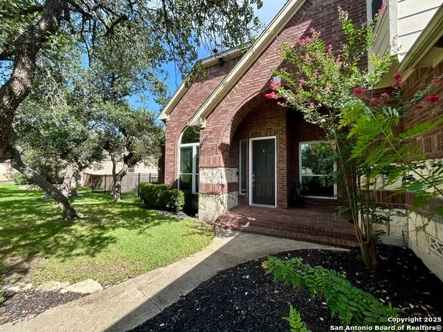 Located on a sprawling 0.98-acre tree-filled lot in the heart of Stone Oak, this beautifully maintained home offers space, comfort, and thoughtful updates in the desirable Overlook community. With over 3,100 sq. ft., the home features five bedrooms, three and a half bathrooms, and a three-car garage. The open floor plan is enhanced by hardwood floors, high ceilings, crown molding, and abundant natural light throughout. The updated kitchen is designed for everyday living and entertaining, featuring a gas cooktop, double ovens, tile backsplash, stainless steel appliances, updated fixtures, a double pantry, and generous cabinetry. Adjacent to the kitchen is a spacious dining area and living space that flows seamlessly out to an expansive deck, perfect for relaxing or entertaining. The large backyard features mature trees that create a peaceful, secluded setting, complemented by an active edible garden and plenty of space to personalize into your own retreat. The primary suite is privately tucked away on the main level and includes a garden tub and walk-in closet. A separate guest suite on the main floor provides added comfort and flexibility. Additional features and updates include an oversized home office ideal for remote work, a new roof (2024), fresh interior paint and flooring, an epoxy-coated garage floor, generous storage throughout, and carpet installed 2 years ago. Located in one of Stone Oak's most desirable neighborhoods and just minutes from top-rated schools, shopping, and dining, this home presents a rare opportunity to enjoy both privacy and convenience in a move-in-ready setting. Book your tour today!