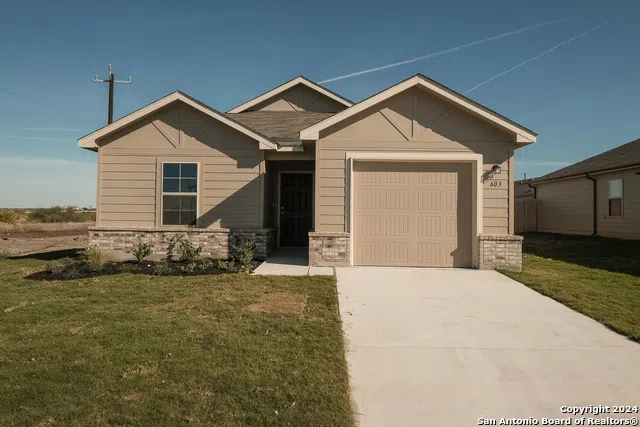 *** READY NOW *** Welcome to 603 River Run Way, a charming new construction house in San Antonio, TX 78219, built by M/I Homes. This modern 2-bedroom, 2-bathroom property offers a cozy yet spacious living space perfect for a diverse range of potential buyers. Situated on a convenient single-story layout, this home boasts a well-designed open floor plan that seamlessly connects the kitchen and living areas, creating an inviting space for relaxation or entertaining guests. The kitchen is a chef's delight, featuring sleek countertops, modern appliances, and ample cabinet storage for all your culinary needs. One of the highlights of this property is the covered patio, offering a lovely outdoor space where you can enjoy your morning coffee or unwind after a long day. With 1 parking space available, you'll have no trouble finding a convenient spot for your vehicle. Spanning approximately 1016 sqft, this home provides a comfortable living environment while maintaining a sense of intimacy and coziness. The 2 well-appointed bedrooms offer plenty of natural light and space to set up your personal retreat. Both bathrooms are elegantly designed, equipped with modern fixtures and fittings to elevate your daily routine. Located in a vibrant neighborhood in San Antonio, this property is surrounded by various amenities, including shopping centers, restaurants, parks, and schools, ensuring that you have everything you need within reach. The community offers a welcoming atmosphere for families, professionals, or individuals looking to settle in a diverse and inclusive environment. In summary, 603 River Run Way is a fantastic opportunity to own a brand-new home with modern features and a convenient location. Whether you're a first-time buyer, downsizing, or seeking an investment property, this house ticks all the boxes for comfort, style, and functionality.