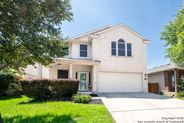 Located in a quiet cul-de-sac in the popular Amhurst community this beautiful 2 story 4-bedroom, 2.5-bath home offers over 2,700 square feet of open-concept living space with numerous upgrades throughout. The kitchen features new stainless steel appliances and opens to a spacious living area with a cozy fireplace. Upstairs includes all bedrooms, second living area, and a generous primary suite with dual vanities, a soaking tub, separate shower, and walk-in closet. Recent upgrades include a new HVAC system, premium water softener, UV filtration light, cleaned and replaced ductwork, updated light fixtures, and sleek epoxy garage flooring. Covered patio with fruit-bearing peach trees in the backyard. Close proximity to 1604/Potranco with easy access to 211 and Lackland AFB. Motivated sellers and are open to offers.