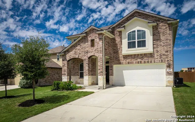 Spacious and Bright! This impressive two-story home, built in 2021, sits on a generous .21-acre lot and boasts 3,658 sq ft of living space, featuring 5 bedrooms, an office, 3.1 bathrooms, and a 2-car garage with an epoxy-coated floor. Nestled in the sought-after Steele Creek community, this home will captivate you from the moment you step inside. The open floor plan includes an office with French doors, a spacious kitchen with granite countertops, a farmhouse sink with a motion-activated faucet, abundant cabinets with upgraded pulls, a huge walk-in pantry, gas cooking, and stainless steel appliances, including an LG fridge. The laundry room is equipped with front-load washer and dryer on pedestals. The large primary bedroom on the main floor features a dual vanity, garden tub, shower, and an expansive walk-in closet. Upstairs, you'll find four large bedrooms, including one with an ensuite bathroom, an additional bathroom, and an incredible game room-perfect for entertaining and making memories. This home is ideal for multi-generational living, offering ample space and privacy for everyone. Outside, the large backyard offers a covered patio, an extended pad for a hot tub, outdoor furniture, and a gravel grilling area, creating an ideal oasis for family and friends. Steele Creek's amenities are unmatched, including a 24/7 fitness center, on-site HOA team, resort-style pool, playground, splash pad, sports court, and a community room available for resident rentals. The community also hosts lifestyle events for the whole family and is conveniently located near the highly acclaimed SCUISD, JBSA-Randolph, entertainment, and fantastic shopping. This home has numerous upgrades-too many to list-and must be seen to be appreciated!