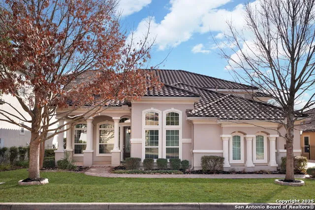 Exquisite two-story home within the exclusive guarded community of The Dominion. This beautiful home gives you plenty of space for entertaining with an interior that is bright and inviting with plenty of natural light beaming through the large windows showcasing 20 foot ceilings and an open floor plan. This home features a Chef's kitchen with stainless steel appliances, tons of counter space and a large breakfast area. Luxurious master suite with a spa-like bath and spacious his and her closets. Ample storage, office and secondary bedroom down stairs make this a rare find. Upstairs you will find a game room and media room, a great place for family and friends to hang. Upstairs there are three spacious bedrooms each with en-suite bathrooms. Lavish greenery surround the outdoors and a spacious yard. This property must be experienced in person to be able to take in all it has to offer.
