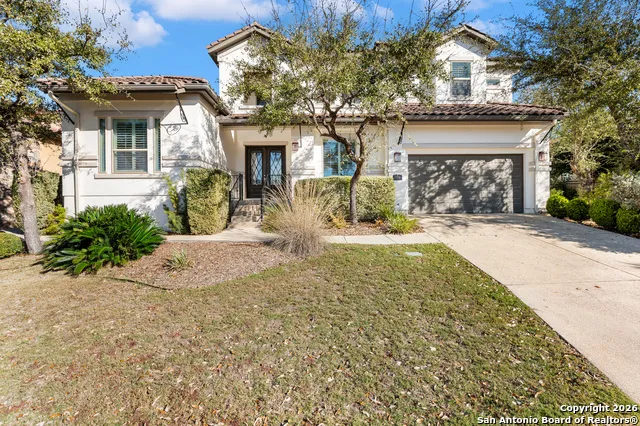 Gracefully positioned within the prestigious guard-gated community of The Dominion, 7106 Bluff Run offers refined luxury living in one of San Antonio's most sought-after enclaves. Built in 2018 by McNair Custom Homes, this thoughtfully designed residence blends timeless architecture with modern comfort, creating an elegant yet highly livable home. Spanning approximately 3,331 square feet, the home features four bedrooms and three-and-a-half baths, including a rare and highly desirable private guest or mother-in-law suite on the main level-ideal for multi-generational living or extended stays. From the moment of arrival, the classic stucco facade, tile roof, mature landscaping, and iron-accented entry set a tone of understated sophistication. Inside, expansive living spaces are highlighted by high ceilings, coffered architectural details, and an abundance of natural light. The heart of the home is the beautifully appointed chef's kitchen, complete with a large statement island, granite countertops, custom cabinetry, and premium stainless-steel appliances. Designed to flow seamlessly into the main living and dining areas, the open-concept layout is perfectly suited for both everyday living and entertaining. The primary suite, located on the main level, serves as a private retreat with hardwood flooring, a tray ceiling, and a spa-inspired bath featuring dual vanities, a soaking tub, and a glass-enclosed walk-in shower. Upstairs, additional bedrooms are generously sized and thoughtfully arranged around a flexible loft space, ideal for a game room, media lounge, or home office. Outdoors, the home continues to impress with a covered patio and fully equipped outdoor kitchen, creating an inviting extension of the living space for year-round enjoyment. The backyard offers ample room to relax, entertain, or personalize with a future pool, all while maintaining a low-maintenance lifestyle. Residents enjoy access to exceptional community amenities including 24-hour guard-gated security, championship golf, tennis and pickleball courts, scenic trails, parks, and an active social calendar-just minutes from premier shopping, dining, and major thoroughfares. Elegant, private, and impeccably maintained, 7106 Bluff Run presents a rare opportunity to experience luxury living at its finest.