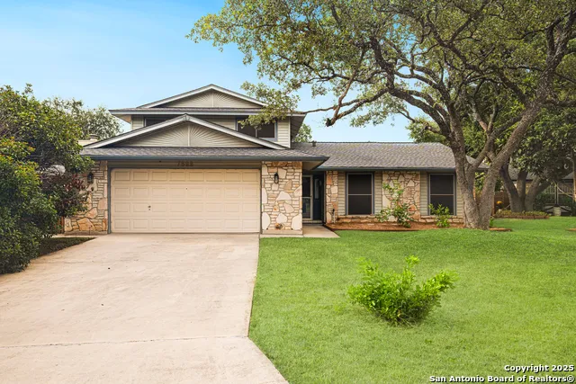 This charming two-story home is located in the Doral community and offers a spacious layout with room to grow. The first floor features a formal living and dining combination, a large second living area with a stone fireplace, and a third living space adjacent to the kitchen that includes built-in shelving and access to the backyard-ideal for a playroom, sunroom, or hobby area. The primary suite is located on the main floor and includes a private bath for added convenience. Upstairs, you'll find a versatile space that can serve as a den, study, or home office, along with additional well-sized secondary bedrooms. Recent updates add peace of mind and include a new roof and gutters in 2025, HVAC replacement in 2023, full renovation of the upstairs bathroom in 2024, the electrical system was updated and upgraded in 2022 with a new electrical panel, heavy-up to 200 amps, and 2 EV charging ports installed in the garage. All appliances are less than three years old, and the quartz kitchen counters were updated in 2022 and carpet was updated in 2025. The oversized garage offers extra space for storage or a workshop. The backyard is a gardener's delight with raised beds, a generous lawn, mature trees, and a privacy fence. Conveniently located near I-410 and TX-151 with quick access to shopping, dining, and more. Schedule your private showing today!