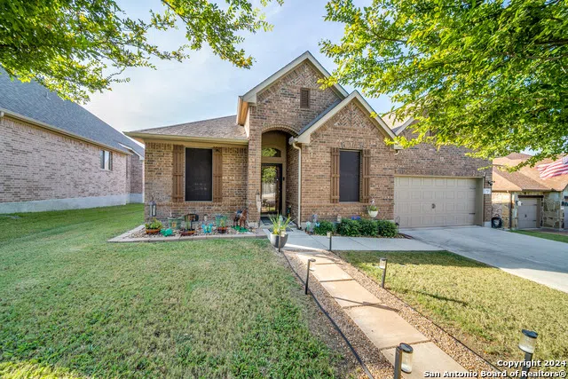 Welcome to Your Dream Home!!! New luxury vinyl plank flooring!!! Discover this meticulously maintained and spacious 4-bedroom, 3-full bathroom haven. With high vaulted ceilings adding a sense of grandeur, luxury vinyl plank flooring (Sept 2024) flowing through the entryway, hall, kitchen, and living room, this home truly has it all. Open layout that seamlessly connects the cozy living room with a dedicated media room. A separate dining area and a versatile office provide ideal spaces for both productivity and relaxation. Upgrades include modern lighting, a new stove (Aug 2024), and the dishwasher and refrigerator are less than two years old. At the heart of this residence lies a stunning kitchen featuring custom 42 inch cabinetry, dual granite islands, and ample counter space-truly a culinary enthusiast's paradise. The expansive primary suite serves as your private sanctuary, boasting a large bathroom equipped with dual vanities, a separate shower, a soothing garden tub, and a generous walk-in closet. Enjoy thoughtful enhancements like sunscreens on every window, gutters, and a covered Texas-sized patio (14x12) with refurbished deck (Aug 2024), perfect for outdoor gatherings or savoring your morning coffee. Additional features include screen door (Jul 2024), storm door, bay windows in the master, pre-plumbed for a water softener, epoxy garage floor, garage shelves and theatre is pre-wired for surround sound and stereo equipment.Located in a sought-after neighborhood, you'll find an array of dining options, shopping venues, fitness centers, and entertainment just minutes away. Families will appreciate access to A-rated schools within the Schertz-Cibolo-Universal City ISD, while military personnel benefit from a short drive to JBSA Randolph and a quick 20-minute commute to JBSA Fort Sam Houston. Looking for summer fun? Schlitterbahn Water Park and San Marcos Premium Outlets are just a 30-minute drive away. Don't miss this exceptional opportunity-make this extraordinary residence yours today!