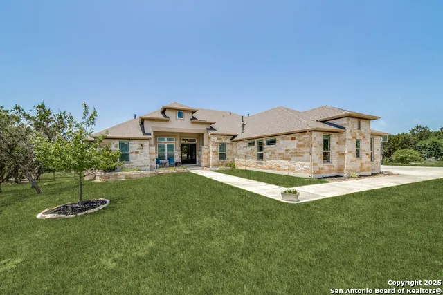 Welcome to The Woods of Garden Ridge! This exquisite 5-bedroom, 5 bathroom home, built in 2020, sits on a premium 1-acre lot in a gated community. With no back neighbors, enjoy peaceful surroundings and breathtaking views. Designed for versatility, this home features dual primary suites-perfect for multigenerational living. Four bedrooms, including the primary suite with private patio access, are located downstairs. The spa-like ensuite boasts a standalone tub and shower combo for ultimate relaxation. Upstairs, a flexible living space serves as a game room, media room, or second master suite. The chef's kitchen is a dream, featuring two granite islands, ample cabinetry, gas cooking, and double ovens. Just off the living room, a playroom or office offers additional functionality. Seamless indoor-outdoor living awaits with custom multi-slide doors opening to a covered patio equipped with a gas fireplace and built-in grill-perfect for entertaining. Picture yourself unwinding in the backyard hot tub, watching the majestic Longhorns roam the property behind the home. This exceptional home truly has it all! Schedule your private tour today! VA ASSUMABLE LOAN.